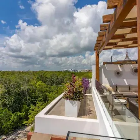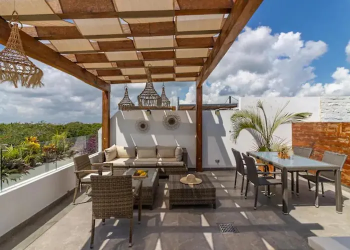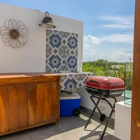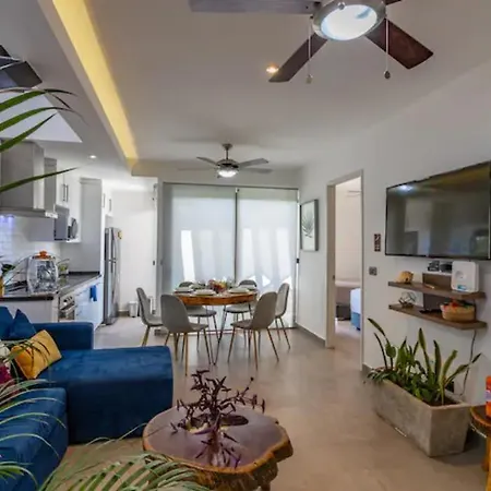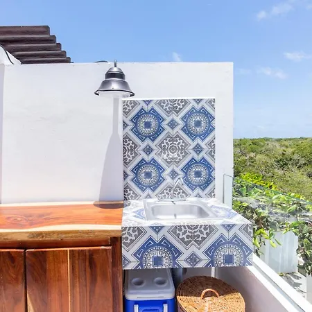Das 2-Zimmer-Akuti By Sandy Powerful liegt im Viertel Zama von Tulum und bietet seinen Gästen ein Hallenbad und ein Außenschwimmbad, wo man sich gut entspannen kann. Der nächstgelegene Flughafen Playa del Carmen liegt 65 km von diesem 140 m^2 großen Apartment entfernt.